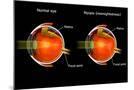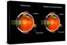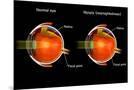 Comparison of a normal eye and an eye with myopia. Wall Art Print