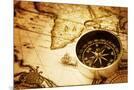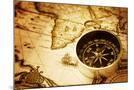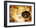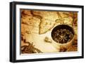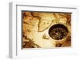 Compass on Old Map Photo Print