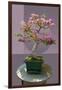 Composite image of Japanese bonsai tree in front of a geometric Asian pattern Photo Print