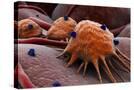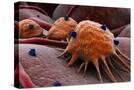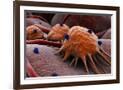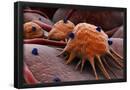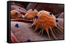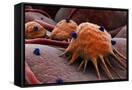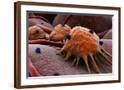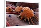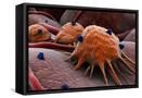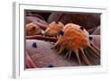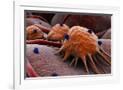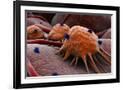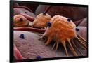 Conceptual image of a drug attacking the cancer virus. Wall Art Print