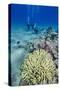 Coral Reef and Three Scuba Divers, Naama Bay, Sharm El-Shiekh, Red Sea, Egypt, North Africa, Africa