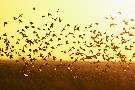 Corn Buntings (Emberiza Calandra) in Flight, Wallasea Island Wild Coast Project, Essex, England, UK