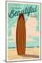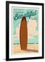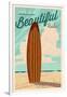 Coronado, California - Surf Board Letterpress - Life is a Beautiful Ride Wall Art Print