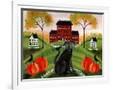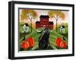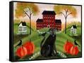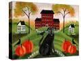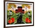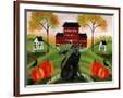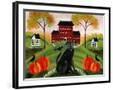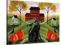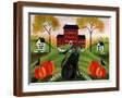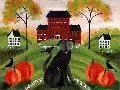 Country Folk Art Dog, Crows And Pumpkins