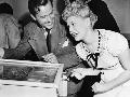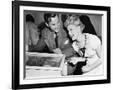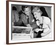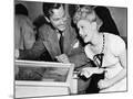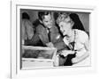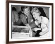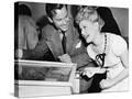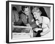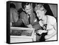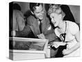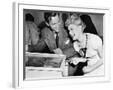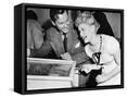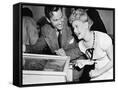 Couple Having Fun and Laughing Next to a Pinball Machine Photo Print