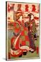 Coutesan Wearing a Heavily Embroidered Gown and Platform Clogs, Japan Giclee Wall Art