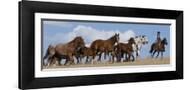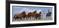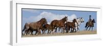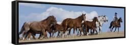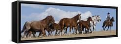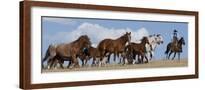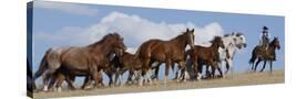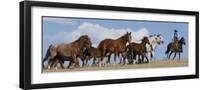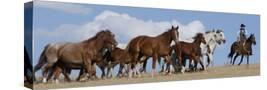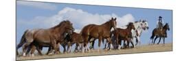 Cowboy Herding Quarter Horse Mares and Foals, Flitner Ranch, Shell, Wyoming, USA