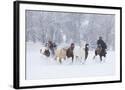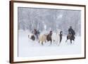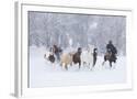 Cowgirl and boy Herding Horses in winters snow, Hideout Ranch, Shell, Wyoming., Photo Print