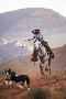 Cowgirl at Full Gallop with Cowdogs Leading Way