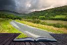 Creative Concept Image of Summer Landscape in Pages of Book Photo Print