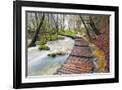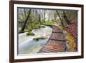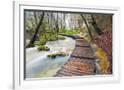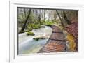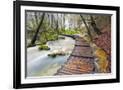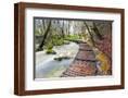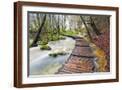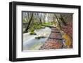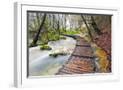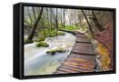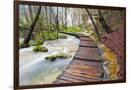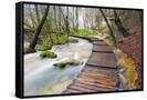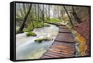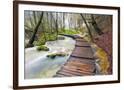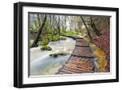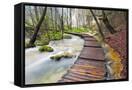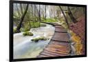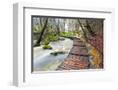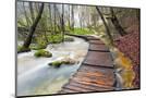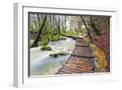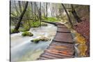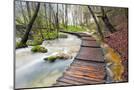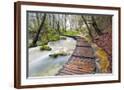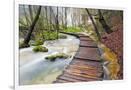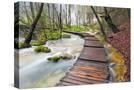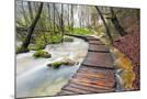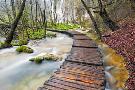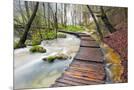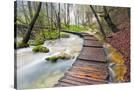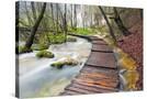 Croatia, Plitvice Lakes National Park. Wooden walkway over stream.