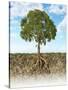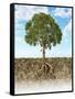 Cross Section of Soil Showing a Tree with its Roots Wall Art Print