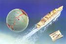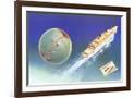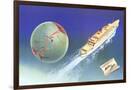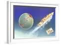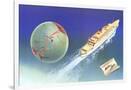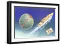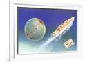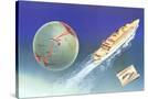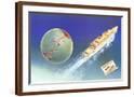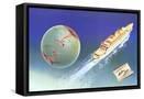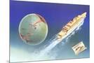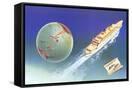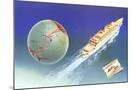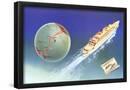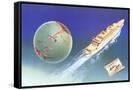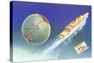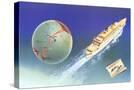 Cruise Ship with Routes on Globe, Matson Line Wall Art Print
