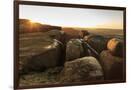 Curbar Edge, at sunrise on a frosty winter morning, Peak District National Park, Derbyshire, Englan