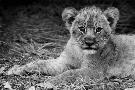 Cute Lion Cub In Black And White
