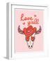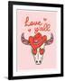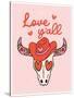 Cute Retro Groovy Western Valentine Cowboy Skull Bull Love Yall Hand Drawn Bold Design