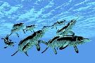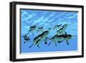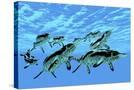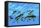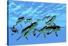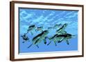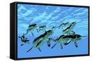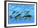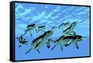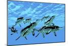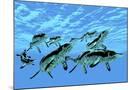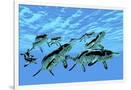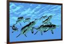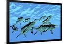Cymbospondylus Ichthyosaurs Swim Together in a Pod Searching for Prey Wall Art Print