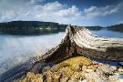 Dead Tree on the Edge of a Lake, Mirroring of the Clouds in the Water Photo Print