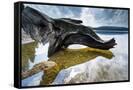 Dead Tree on the Edge of a Lake, Mirroring of the Clouds in the Water Photo Print
