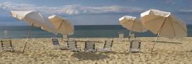 Deck Chairs and Beach Umbrellas on the Beach, Jetties Beach, Nantucket, Massachusetts, USA