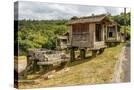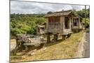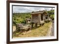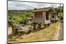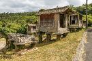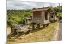 Derelict abandoned old granary grain stores (horreos) in village of Rubillon, Ourense province