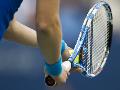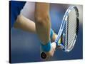 Detail of Tennis Player Holding the Racquet and Ball About to Serve