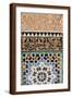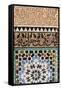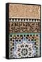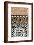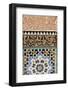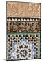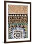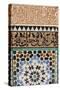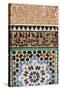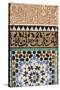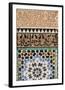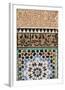Detail of calligraphy and zellij in the patio, Ben Youssef Meders