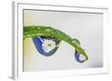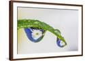 Dew drop reflecting flowers from Asiatic Lily leaf of white daisy