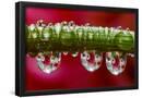 Dewdrops on dahlia stem reflecting a dahlia in the background Photo Print