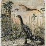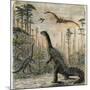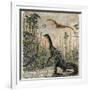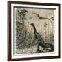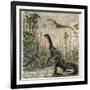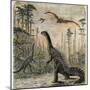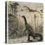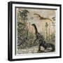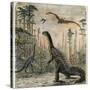 Dinosaurs of the Jurassic Period: a Stegosaurus with a Compsognathus in the Background Photo Print