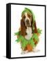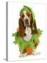 Dog Dressed Up for Halloween - Basset Hound Wearing Pumpkin Costume Sitting