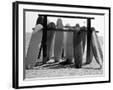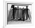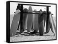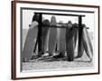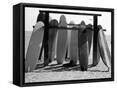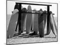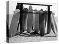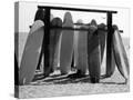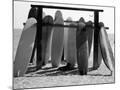 Dog Seeking Shade under Rack of Surfboards at San Onofre State Beach