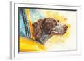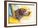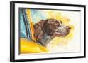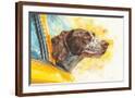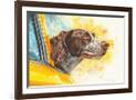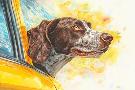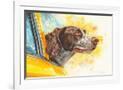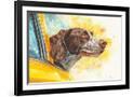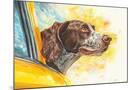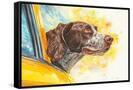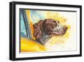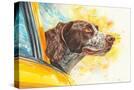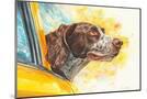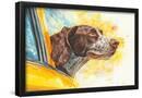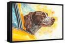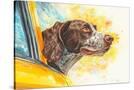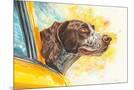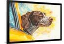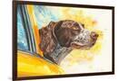Dog riding with head out car window. (AI Generated) Wall Art Print