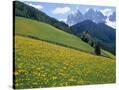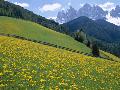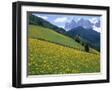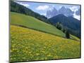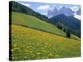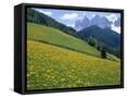 Dolomites Mountains and Wild Yellow Flowers, Villnoss / Val Di Funes, Trentino, Italy