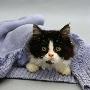 Domestic Cat, Black-And-White Semi-Longhaired Kitten in Blue Pullover