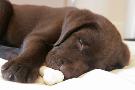 Domestic Dog, Chocolate Labrador Retriever, male puppy, sleeping