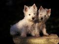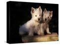 Domestic Dogs, Two West Highland Terrier / Westie Puppies Sitting Together