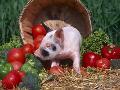 Domestic Piglet, Amongst Vegetables, USA