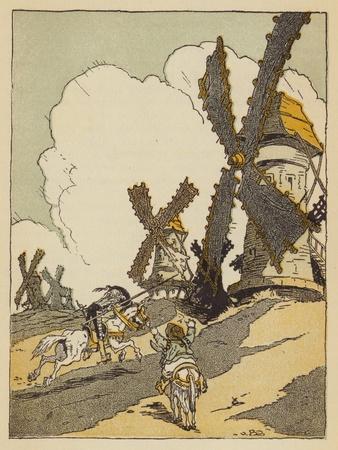 Don Quixote Tilting at Windmills (Colour Litho)