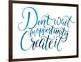 Don't Wait for Opportunity. Create It. Motivational Quote about Life and Business. Challenging Slog Wall Art Print