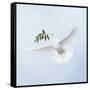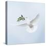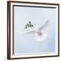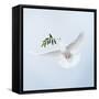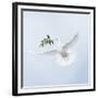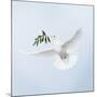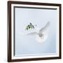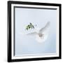 Dove in Flight Carrying Olive Branch in Beak Opeaceo