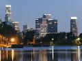 Downtown District Skyscrapers Located Behind Echo Park Lake, Los Angeles, California, USA
