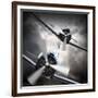 Dramatic Scene on the Sky: Vintage Fighter Plane Inbound from Sun Photo Print