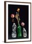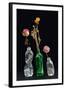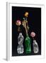 Dried Flowers in Crashed Plastic Bottles on a Black Background