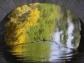 Duck Passes under a Bridge in Lazienki Park in Warsaw, Poland