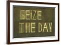 Earthy Background And Design Element Depicting The Words "Seize The Day" Wall Art Print