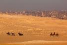Egypt, Cairo, Giza, Evening Light, Camels and Horses