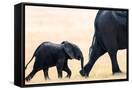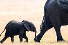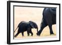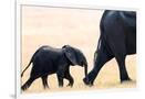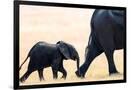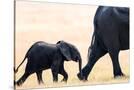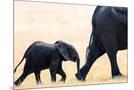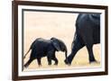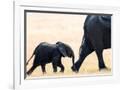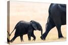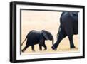 Elephant calf following mother, Hwange National Park, Zimbabwe, Africa