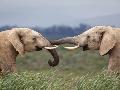Elephants (Loxodonta Africana), Greeting, Addo National Park, Eastern Cape, South Africa, Africa