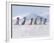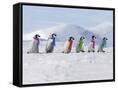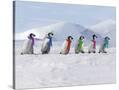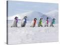 Emperor Penguins, 4 Young Ones Walking in a Line